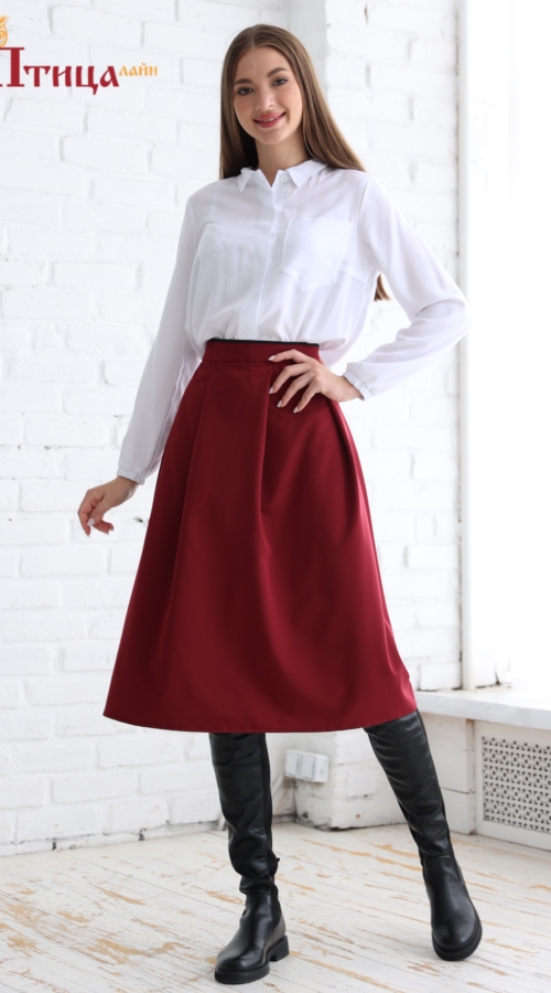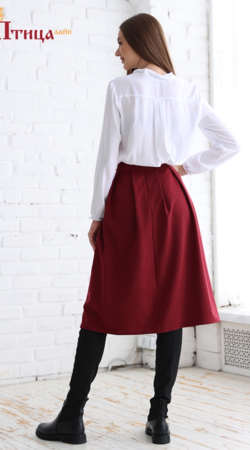 Юбка "Татьяна" с глубокими складками, юбка с хорошим шагом. За счет плательной ткани, юбка шикарно держит форму. Оригинальный пояс, двойной, с эластичной резинкой, прекрасно подчеркивает талию. Контраст фиксиро...