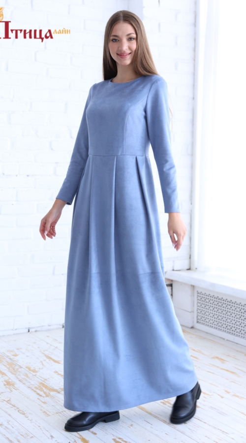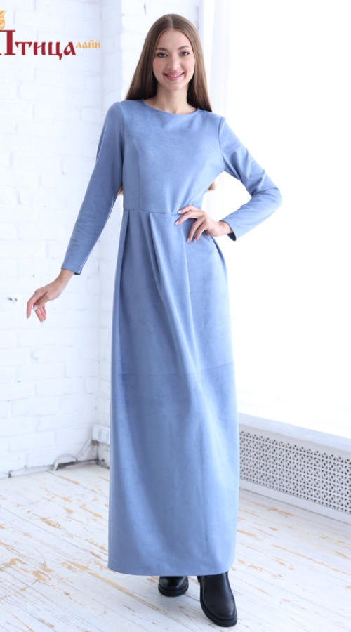 Платье женское отрезное по талии полуприлегающего силуэта. Юбка "Татьянка" с глубокими складками. Рукав втачной прямой, длинный. Для удобства по среднему шву на спинке застежка на «молнию». Женственное платье, ...