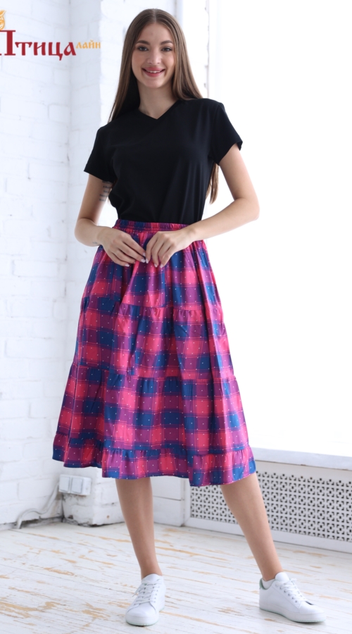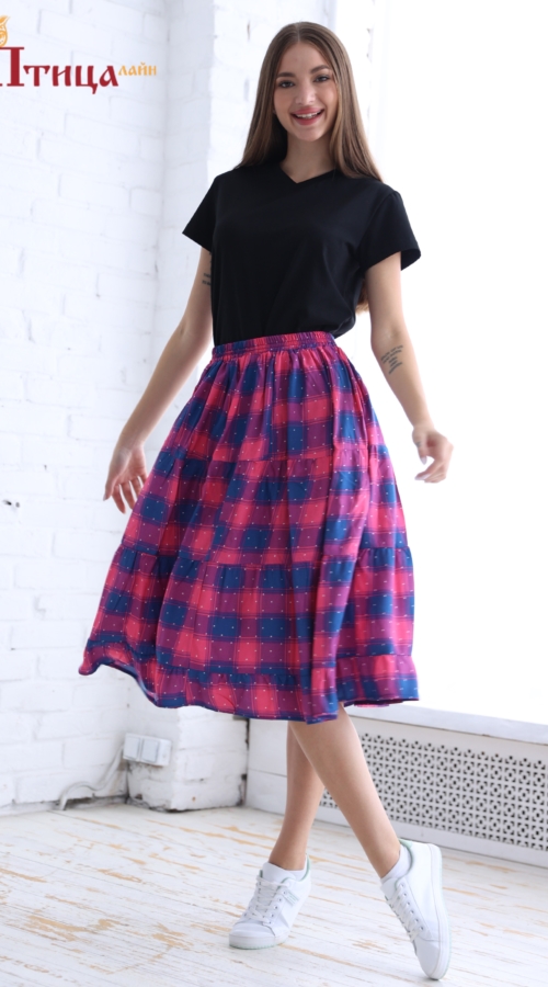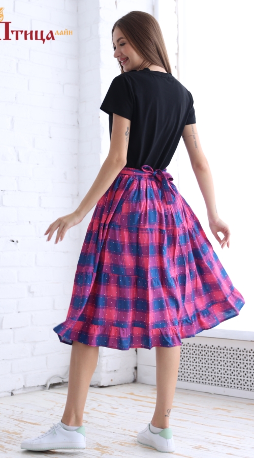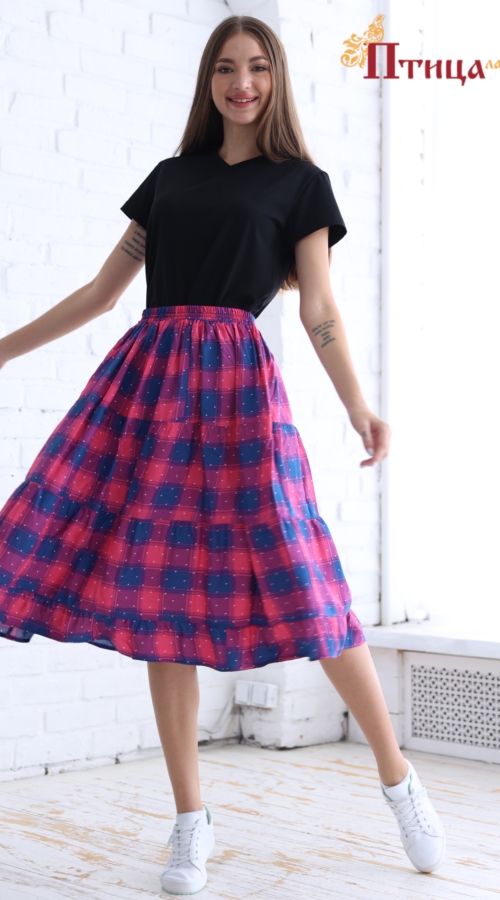 Юбка в 4 яруса, с шикарным расклешением, юбка с хорошим шагом. Оригинальный пояс, собранный на эластичную ленту, прекрасно подчеркивает талию, дополненое декоративными поясочками. Контраст фиксированной талии ...