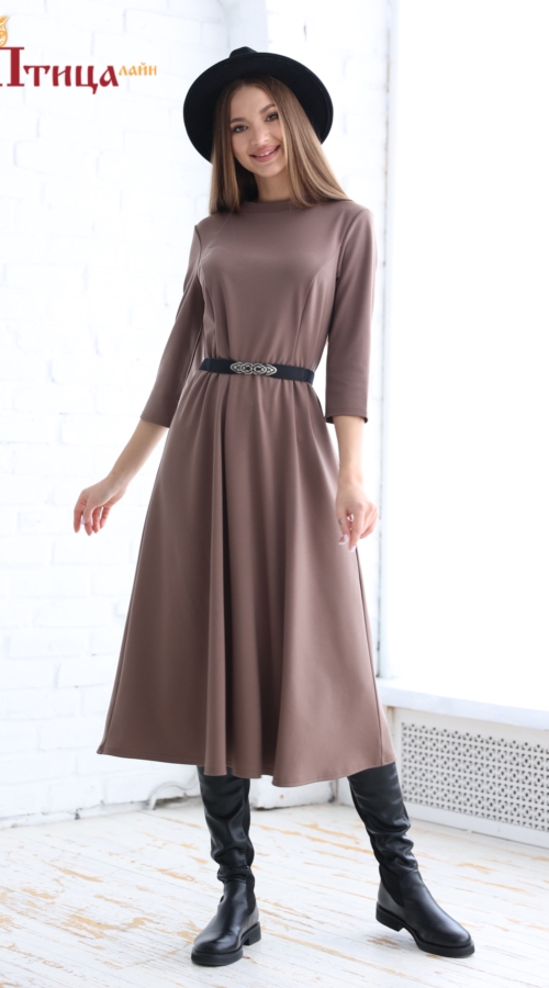 Романтичный осенний образ: платье приталенного силуэта, с отрезной линией талии, длиной миди. Женственный силуэт достигается за счет рельефов по полочки и спинки, рукав зауженный длиной 3/4. Необыкновенной крас...