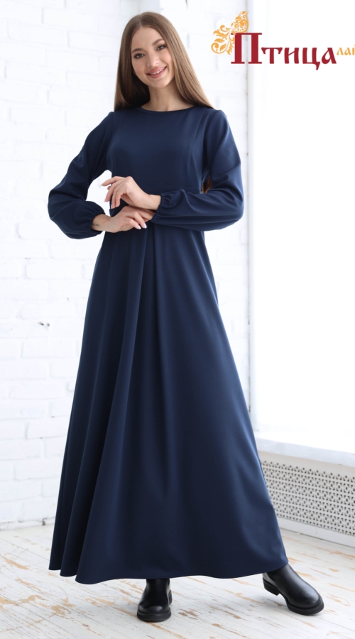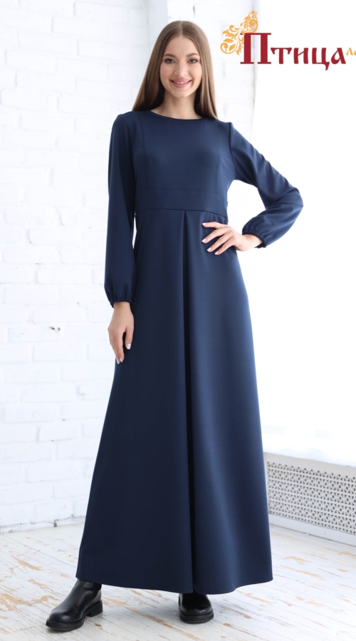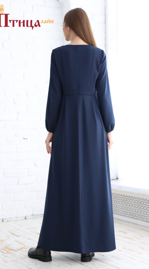 Платье отрезной по талии, линия талии завышенная. Юбка расклешенная к низу, по полочке встречная складка. Рельефы на полочке и спинке. По линии талии втачной пояс придает платью полуприлегающий силуэт. Украшени...