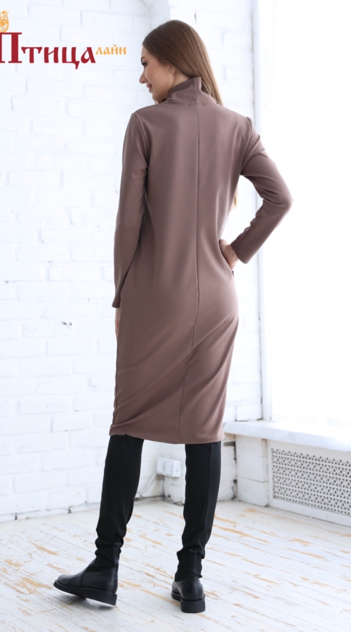 Платье прямого кроя, немного зауженное к низу, низ изделия достаточен для шага. Рукав втачной , зауженный к низу. Модель украшена 10см стойкой, что позволяет носить ее как полностью поднятой, так и согнутой по...