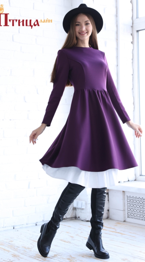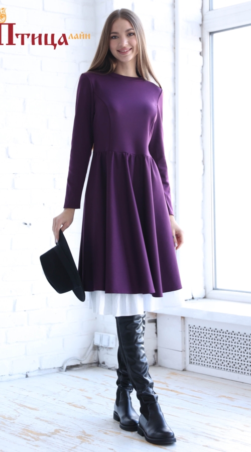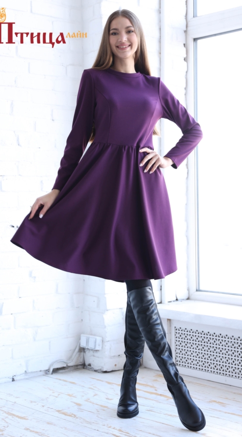 Теплое платье из трикотажа премиум класса с юбкой полусолнце, длиной за линию колена. Платье идеально сидит по фигуре, дополняя образ как с обувью на низком каблуке, так и на высоком. Приталенный силуэт созда...