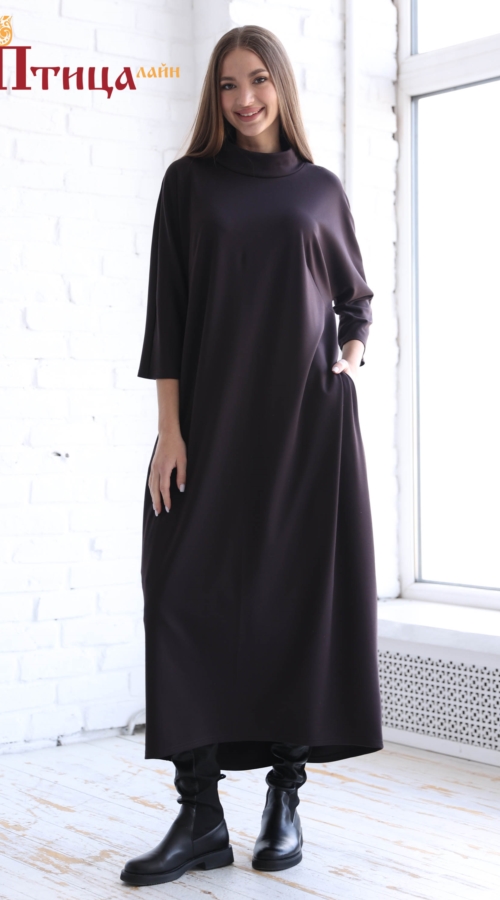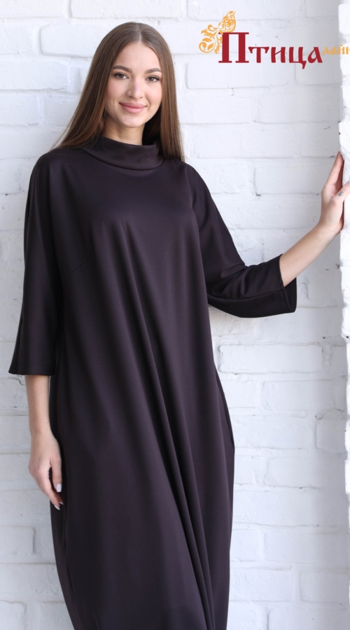 Платье прямого силуэта с закругленными боками, с цельнокроенным рукавом, эффектно создают контраст мягкого низа и нешироких рукавов. Платье выполнено из плотного трикотажа, карманы в боковых швах очень удобны в...