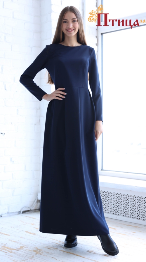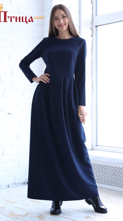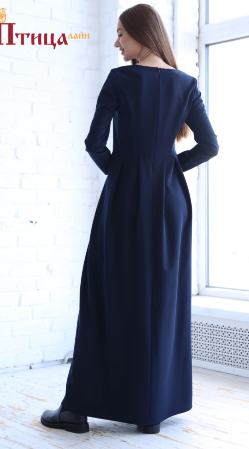 Платье женское отрезное по талии полуприлегающего силуэта. Юбка "Татьянка" с глубокими складками. Рукав втачной прямой, длинный. Для удобства по среднему шву на спинке застежка на «молнию». Женственное платье, ...